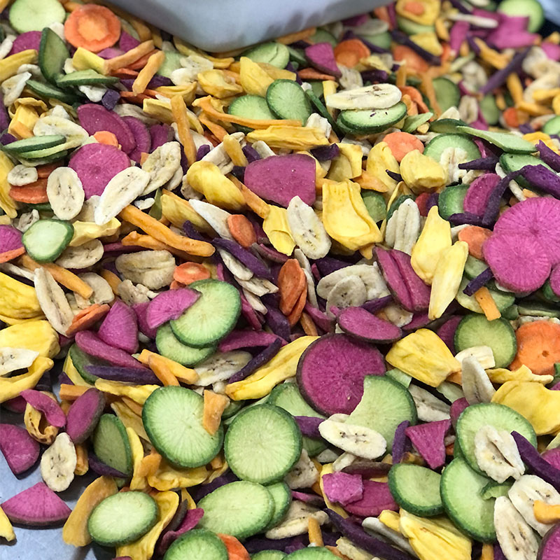優點:通過低溫真空油炸技術,果蔬脆片的制作過程更加環保和健康,避免了高溫油炸可能帶來的營養流失和食品安全問題。萊陽客戶使用低溫真空油炸機制作果蔬脆片的試機現場展示了該設備在快速脫水、低含油量、高貯性能等方面的優勢,為客戶提供了一種高效、健康的食品加工解決方案。