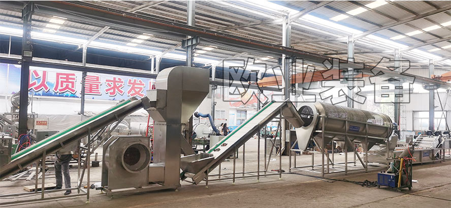 將原料倒入提升機進料斗內,提升機將原料提升到主機,原料即從風筒高端流向低端,低端出口連接下道工序,由此小石子、碎磚頭等較重雜物由篦子間隙落入集雜箱內,樹葉、雜草、塵土等輕質雜物由吹風機吹入排風口外,風選機結束后進入清洗工序及瀝水工序。