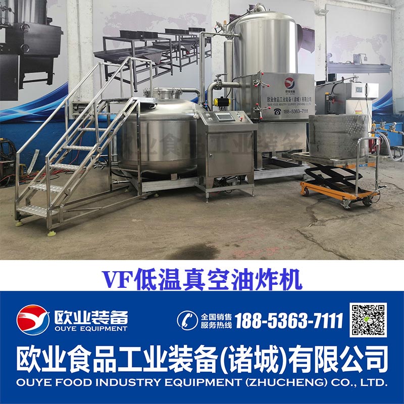 真空低溫油炸設備組成:真空油炸罐、油加熱系統、真空系統、儲油補油系統、氣動系統、自動脫油系統